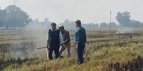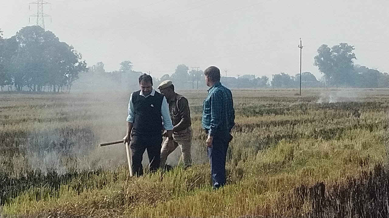 एसडीएम ने खेत में जलती पराली को बुझाया, छह लोगों पर कार्रवाई
