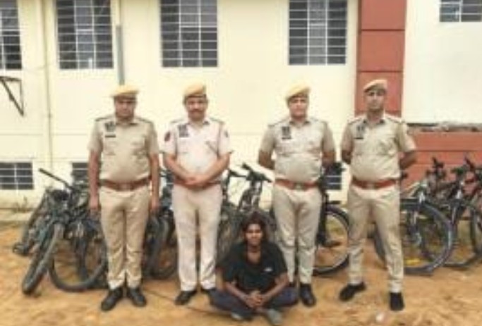 जयपुर,(सुरेन्द्र कुमार सोनी) । पुलिस उपायुक्त जयपुर पश्चिम श्री अमित कुमार ने बताया कि समसस्त थानाधिकारीगणो को सम्पति सम्बन्धी अपराधों की रोकथाम हेतु अधिक से अधिक प्रभावी कार्यवाही करने हेतु निर्देशित किया गया था। सम्पत्ती सम्बन्धी अपराधों की रोकथाम हेतु थाना करधनी पर श्री आलोक सिंघल अति० पुलिस उपायुक्त जयपुर के निर्देशन में एवं श्री सुरेन्द्र सिंह राणावत सहायक पुलिस आयुक्त झोटवाडा के सुपरवीजन में थानाधिकारी थाना करधनी श्री सवाई सिंह के नेतृत्व में एक विशेष टीम का गठन किया गया था। गत दिनो करधनी थाना क्षेत्र में दिन के समय मकानों एवं फ्लेटो में बनी पार्किंगो से बच्चो की महंगी भाव की साईकिल चोरी होने की वारदाते हो रही थी। साईकिल चोरी की वारदातो को खुलासा करने हेतु टीम के सदस्यो द्वारा सीसीटीवी फुटेज का अवलोकन किया गया एवं दिन के समय सादा वस्त्रो में गश्त करके संदिग्ध व्यक्ति की हुलिये के आधार पर तलाश की गई। टीम के सदस्यो ने कल दिनांक 15.6.25 को अभियुक्त मौसम जथुरिया पुत्र स्व श्री रामबाबू जाति रैगर उम्र 20 साल निवासी प्लाट नं 110 पवनपुत्र एच, मीणावाला थाना करणी विहार जयपुर को गिरफ्तार करवा कर उसके कब्जे से दिनांक 11.6.2025 को शेखावाटी नगर गोविन्दपुरा कालवाड रोड से दिन के समय घर के बाहर से चुराई गई साईकिल बरामद की गई। मुलजिम से पूछताछ के दौरान अन्य स्थानो से चुराई गई 12 अन्य महंगी साईकिल भी बरामद की गई है।