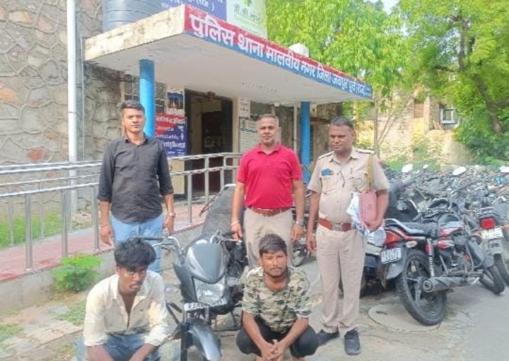 जयपुर,(सुरेन्द्र कुमार सोनी) । पुलिस उपायुक्त तेजस्वनी गौतम आईपीएस जिला जयपुर पूर्व ने बताया कि जयपुर में बढ़ती मोटर साईकिल चोरी की वारदातों पर अंकुश लगाने हेतु समस्त थानाजात को निर्देशित किया गया था। इसी क्रम में अतिरिक्त पुलिस उपायुक्त श्री आशाराम चौधरी आरपीएस के निर्देशानुसार व श्री आदित्य पूनिया आरपीएस सहायक पुलिस आयुक्त, मालवीय नगर, जयपुर पूर्व के सुपरविजन में व श्री संग्राम सिंह पुलिस निरीक्षक पुलिस थाना मालवीय नगर जयपुर पूर्व के नेतृत्व में थाना मालवीय नगर से टीम का गठन कर मुकदमा संख्या 205/25 धारा 303(2) बीएनएस में शातिर मोटर साईकिल चोर विशाल बर्मन व बबलू दास को चोरी की मोटर साईकिल के साथ गिरफ्तार किया गया। दिनांक 25.06.2025 को श्री गौरव शर्मा ने पुलिस थाना मालवीय नगर पर उपस्थित होकर अपनी मोटर साईकिल होण्डा शाईन नं. आरजे 14 डीसी 3351 चोरी होने के संबंध में रिपोर्ट दर्ज करवाई थी। जिसपर प्रकरण संख्या 205/25 धारा 303 (2) बीएनएस दर्ज कर थाना मालवीय नगर से टीम का गठन किया गया। टीम द्वारा आसपास के सीसीटीवी फुटेजों को आधार बनाकर मुखबिर की इत्तला एवं टीम के अथक प्रयासों से आरोपी विशाल बर्मन व बबलू दास को गिरफ्तार किया गया। उक्त मुलजिम नशे का आदि है, जो रैकी कर मकानों, दुकानों के बाहर खड़ी मोटर साईकिल को चुराने की वारदात करते हैं। मुलजिमान विशाल बर्मन व बबलू दास मोटर साईकिल चोरी कर मोटर साईकिल के पुर्जों को अलग अलग कर रास्ते में आते जाते ठेले वाले कबाडियों को बेच देते हैं। मोटर साईकिल के पुर्जों से मिलने वाले रूपयों से दोनों मुलजिमान अपना नशा पूर्ति करते हैं।