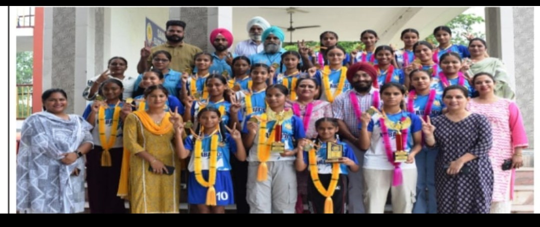 🎉 A grand welcome awaited the team back at school – led by Managing Director Dr. Mangal Singh Kishanpuri Ji and Principal Mrs. Amarpreet Kaur, who celebrated by distributing sweets and showering blessings on our young champions. The girls were honored with flower garlands and brought to the stage to the vibrant sounds of the school band.