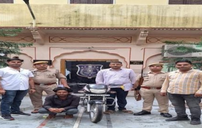 जयपुर,(सुरेन्द्र कुमार सोनी) । परिवादी श्री सोनू साहू पुत्र श्री शंकरलाल साहू निवासी 123 शिवाजी नगर शास्त्रीनगर जयपुर ने उपस्थित थाना होकर एक रिपोर्ट पेश की कि मै दिनांक 13.07.2025 को मेरी मोटरसाईकिल RJ 26 SU 1424 से गोविन्द देवजी मन्दिर दर्शन करने के लिए आया था मोटरसाईकिल गेट के बाहर खड़ी की थी वापस आकर देखा तो मोटरसाईकिल नहीं मिली। कोई चुराकर ले गया आदि पर मुकदमा न. 186/2025 धारा 303 (2) BNS में दर्ज कर अनुसंधान आरम्भ किया गया। प्रकरण की गंभीरता को देखते हुए पुलिस उपायुक्त जयपुर उत्तर श्रीमती राशि डोगरा डूडी IPS के निर्देशानुसार माल की बरामदगी एवं मुल्जिम की शीघ्र गिरफ्तारी हेतु श्री बजरंग सिहँ अतिरिक्त पुलिस उपायुक्त जयपुर उत्तर ।। के सुपरविजन में एवं श्री अनूपसिहँ सहायक पुलिस आयुक्त कोतवाली जयपुर उत्तर के निर्देशन में श्री महावीर सिहँ पुलिस निरीक्षक थानाधिकारी कोतवाली के नेतृत्व में टीम गठित की गई। टीम द्वारा 100 से अधिक सीसीटीवी कैमरे चैक किये जाकर अथक प्रयासों से मुल्जिम को गिरफ्तार किया जाकर चोरी गई मोटरसाईकिल को बरामद करने में सफलता हासिल की गई।