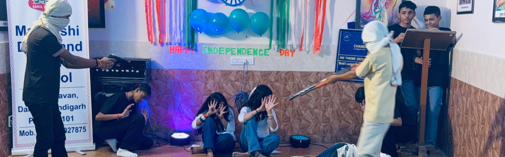 मनोज शर्मा,चंडीगढ़। महर्षि दयानंद पब्लिक स्कूल ,एमडीएवी भवन,दरिया,चंडीगढ़ ने स्वतंत्रता दिवस धूमधाम से मनाया। एरिया पार्षद बिमला दुबे ने अनिल दुबे,सरिता मेहता,जेपी राणा,अमित गर्ग,किरण आहूजा और कई गणमान्यों की उपस्थिति में विद्यालय परिसर में ध्वजारोहण किया। श्रीमती सिकंदरा देवी मल्टीमीडिया हाल में कार्यक्रम का आयोजन हुआ। विद्यार्थियों ने हंसते गाते धूम मचाते चलते जाएंगे,हम नन्हे राही, मेरा मुल्क मेरा देश, यह देश है वीर जवानों का आदि देश भक्ति गीत प्रस्तुत किये। देश मेरे देश मेरे मेरी जान है तू , विजय भव आजादी का अमृत महोत्सव इंडिपेंडेंस डे, वन इंडिया मैशअप पैट्रियोटिक पर नृत्य प्रस्तुत किया। रिलिजन इज ए वे टू मेक फ्रेंड्स नॉट टू फाइट पर प्ले किया।