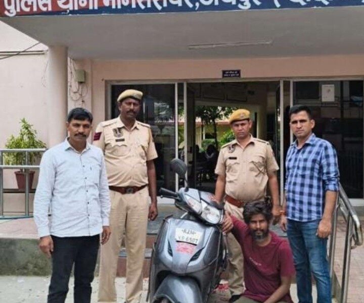 जयपुर,(सुरेन्द्र कुमार सोनी) । श्री राजर्षि राज,आईपीएस, पुलिस उपायुक्त (दक्षिण),जयपुर ने बताया कि ” जिला जयपुर दक्षिण में बढ़ती वाहन चोरी की वारदातों के मद्देनजर पुलिस सर्किल मानसरोवर जयपुर दक्षिण में श्री ललित शर्मा, अतिरिक्त पुलिस उपायुक्त, जयपुर दक्षिण के निर्देशन में श्री आदित्य काकडे आईपीएस, सहायक पुलिस आयुक्त, मानसरोवर के सुपरवीजन में थानाधिकारी मानसरोवर श्री लखन सिह खटाना पु०नि० व चुनिन्दा पुलिसकर्मियों श्री मदन लाल हैड कानि० 1993, रामलाल कानि0 9271, रामवतार कानि0 3512 की पुलिस टीम का गठन किया जाकर वाहन चोरी की करने वाली गैंग पर निगरानी जारी की गई। दिनांक 11.08.2025 को परिवादिया श्रीमति श्रतिका पत्नी श्री आशीष कुमार ने उपस्थित थाना होकर रिपोर्ट पेश की कि मेरा वाहन होण्डा एक्टिवा नम्बर आरजे 14 एक्सएस 6507 दिनांक 08.08.2025 को मेरे मकान से चोरी हो गई आदि रिपोर्ट पर मुकदमा नम्बर 689/2025 धारा 303(2) बीएनएस दर्ज कर तलाश आरम्भ की गई। पुलिस थाना मानसरोवर, जयपुर दक्षिण पुलिस टीम द्वारा अविलम्ब कार्यवाही करते हुये घटनास्थल के आस-पास के सीसीटीवी कैमरों की रिकार्डिंग चैक किया गया। पूर्व के चालान शूदा अपराधियों के मूमेन्ट पर निगरानी की गई तथा दिनांक 14.08.2025 को मुखबीर खास की ईतला अनुसार आरोपी प्रदीप योगी को प्रकरण हाजा में चोरी की गई स्कुटी सहित दस्तयाब किया गया। आरोपी से प्रकरण हाजा में चोरी की गई स्कुटी बरामद की जाकर गिरफ्तार किया गया। आरोपी से अन्य वाहन चोरी के संबंध में अनुसंधान जारी है।