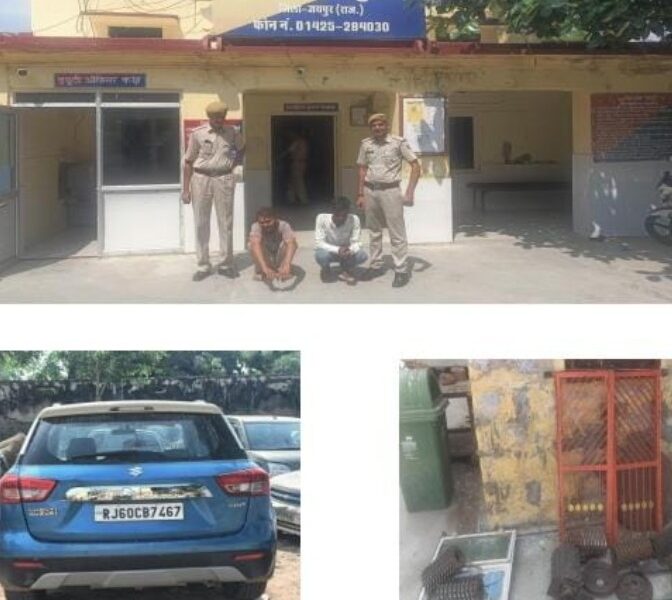 जयपुर,(सुरेन्द्र कुमार सोनी) । श्रीमती राशि डोगरा ढूंडी आईपीएस पुलिस अधीक्षक जिला जयपुर ग्रामीण ने जानकारी देते हुए बताया है कि दिनांक 17.08.2025 को परिवादी श्री विमल कुमार जैन पुत्र चांदमल जैन निवासी उद्योग नगर जोबनेर रोड़ फुलेरा जिला जयपुर ग्रामीण ने रिपोर्ट दर्ज करवायी की फुलेरा रिको एरिया में मेरा खुद का एक गोदाम है जिसमें लगे हुए लोहे की खिडकियां और लोहे के ओर आईटम चोरी हो गये हैं। आदि रिपोर्ट पर प्रकरण दर्ज कर अनुसंधान प्रारंभ किया गया। प्रकरण में अज्ञात चोरों को शिघ्र गिरफ्तार करने हेतु अतिरिक्त पुलिस अधीक्षक दूदू श्री शिवलाल बैरवा व वृत्ताधिकारी सांभरलेक श्री अनुपम मिश्रा के सुपरविजन में तथा थानाधिकारी फुलेरा श्री चन्द्रप्रकाश पुलिस निरीक्षक के नेतृत्व में पुलिस टीम का गठन किया गया। गठित टीम द्वारा आसूचना संकलन व तकनीकी सहायता द्वारा कड़ी मेहनत करते हुए चोरी की वारदात करने वाले दो शातिर चोर भंवरलाल उर्फ बाबू नायक एवं गौरव कुमावत को डिटेन कर पूछताछ की गयी तो दोनों ने जुर्म करना स्वीकार किया जिस पर दोनों आरोपियों को दिनांक 18.08.2025 को गिरफ्तार कर कब्जे से चोरी किया गया सामान लोहे के जंगले, मशीनों के पुर्जे व अन्य लोहे के सामान को बरामद किया गया है तथा घटना में प्रयुक्त वाहन ब्रेजा नम्बर RJ 60 CB 7467 को भी जप्त किया गया है। आरोपिगण नशेड़ी प्रवृत्ति के हैं जो नशे की लत को पूरा करने के लिए चोरी की वा. रदात करते हैं। आरोपियों से प्रकरण में पूछताछ व अनुसंधान जारी है।