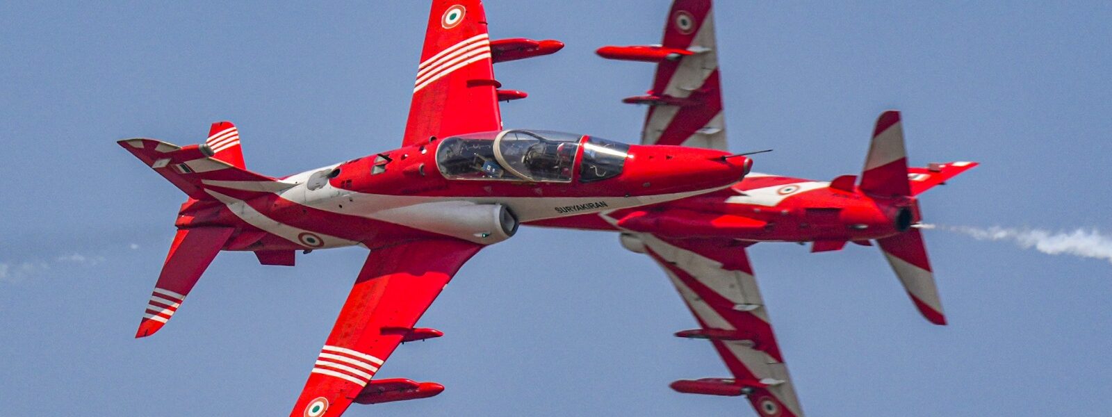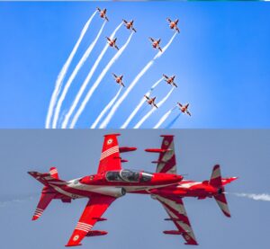 सूर्यकिरण एरोबैटिक टीम,जिसे “भारतीय वायु सेना के राजदूत” के रूप में जाना जाता है,अपनी सटीकता,कौशल और टीम वर्क के लिए प्रसिद्ध है। लाल और सफेद रंग के आकर्षक हॉक Mk-132 जेट उड़ाते हुए, यह विशिष्ट टीम हैरतअंगेज करतबों की एक श्रृंखला का प्रदर्शन करेगी। सुंदर लूप और रोमांचकारी बैरल रोल से लेकर गुरुत्वाकर्षण को चुनौती देने वाली उल्टी उड़ान और दर्शकों के पसंदीदा डीएनए पैंतरेबाज़ी तक, हर प्रदर्शन पायलटों की बेजोड़ विशेषज्ञता और समन्वय का प्रमाण प्रस्तुत करेगा।