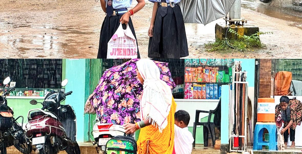 सितंबर की मूसलाधार बारिश में रेनकोट और छाता लेकर स्कूल जाते दिखे बच्चे सिकासार बांध से 50000 क्यूसेक पानी छोड़े जाने का आदेश