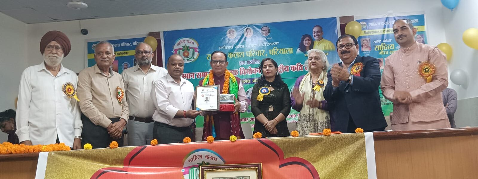 मनोज शर्मा,चंडीगढ़। चंडीगढ़ के सुप्रसिद्ध साहित्यकार डॉ. विनोद कुमार शर्मा की साहित्य साधना और लगन को देखते हुए साहित्य कलश परिवार पटियाला ने प्रभात परवाना,बारादरी, पटियाला में कवि सम्मेलन एवं साहित्यिक समारोह में हर्ष कुमार ‘हर्ष’ साहित्य गौरव सम्मान 2025 एवं 2100 रूपये राशि सहित अभिनन्दन पत्र ससम्मान भेंट किया। साहित्य कलश पटियाला ने यह सम्मान भेंट करते हुए कहा कि डॉ विनोद शर्मा को सम्मानित करते हुए वे स्वयं को गौरवान्वित महसूस कर रहे हैं। उन्होंने डॉक्टर शर्मा के सुखमयी साहित्यिक जीवन की कामना की। डॉ. विनोद शर्मा ने सागर’ सूद,संजय सम्पादक एवं संस्थापक साहित्य कलश पब्लिकेशन का इस सम्मान के लिए आभार व्यक्त किया। डॉ. विनोद कुमार शर्मा प्रतिष्ठित कवि हैं। जिनकी रचनाएं भारतीय संस्कृति और मूल्यों को दर्शाती हैं। उन्हें वर्ल्ड बुक ऑफ रिकॉर्ड, इंटरनेशनल आइकन अवार्ड, एशिया बुक ऑफ़ वर्ल्ड रिकॉर्ड, यू एस ए बुक ऑफ़ वर्ल्ड रिकॉर्ड, विश्व रत्न सम्मान,इंटरनेशनल अचीवर्स अवार्ड, क्रिडेंस वर्ल्ड रिकॉर्ड,ओरिएंट बुक ऑफ़ वर्ल्ड रिकॉर्ड,लंदन बुक ऑफ रिकॉर्ड,जीनियस इंडिया बुक ऑफ़ वर्ल्ड रिकॉर्ड,प्रेस्टीजियस बुक ऑफ़ वर्ल्ड रिकॉर्ड्स,भारत बुक ऑफ़ वर्ल्ड रिकॉर्ड्स आदि एवं राष्ट्रीय स्तर के कई अवार्ड प्राप्त हो चुके हैं। उनकी अधिकतम पुस्तकों को भी सम्मानित किया जा चुका है।