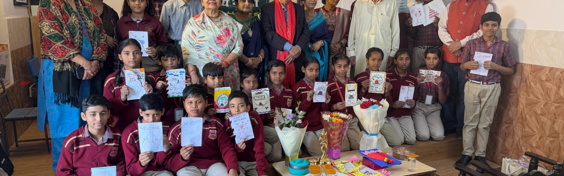 वहीं डॉ. सरिता मेहता द्वारा लिखित रचना प्रस्तुत करते हुए सुहासिनी ने कहा- माना मातृभूमि भारत से बहुत ही दूर बैठी हूँ। परी ने कहा – दूर प्रदेश में आकर,अपने देश को बहुत याद किया बहुत ही खटकने लगता है। काजल ने कहा – मोहब्बत भरे दो शब्द। दिलबाग ने कहा – सुन ! क्या कहता है झरने का यह बहता पानी। अन्य कई विद्यार्थियों ने भी दोनों साहित्यकारों की रचनाएं प्रस्तुत की। कविवर प्रेम विज ने स्कूल के प्रबंधकों की प्रशंसा करते हुए कहा कि यह पहली बार है कि किसी स्कूल ने साहित्यकारों को इतना ज्यादा महत्वपूर्ण और आदर प्रदान किया है। तत्पश्चात उन्होंने अपना लोकप्रिय गीत – अगर दुनिया वालों मोहब्बत न होती, किसी को किसी की जरूरत न होती पेश किया। इस अवसर पर डा विनोद शर्मा द्वारा लिखित भजन ओम भज को बच्चों ने संगीत में प्रस्तुत किया। डॉ संगीता चौधरी ने आर्थिक तौर से कमजोर वर्ग के दो विद्यार्थियों को यूनिफॉर्म भेंट और बच्चों को स्टेशनरी भी वितरित की। प्रेम विज और डॉ. सरिता मेहता ने बच्चों की रिफ्रेशमेंट के लिए स्कूल को नकदी दी। कार्यक्रम का संचालन किरण प्रभा ने किया। सांस्कृतिक कार्यक्रम संगीत के अध्यापक सुभाष कुमार के निर्देशन में हुआ। कार्यक्रम के समापन पर केक कटिंग सेरेमनी हुई। हैप्पी बर्थडे गीत पर विद्यार्थियों और उपस्थित गणमान्य लोगों ने नृत्य पेश किया।