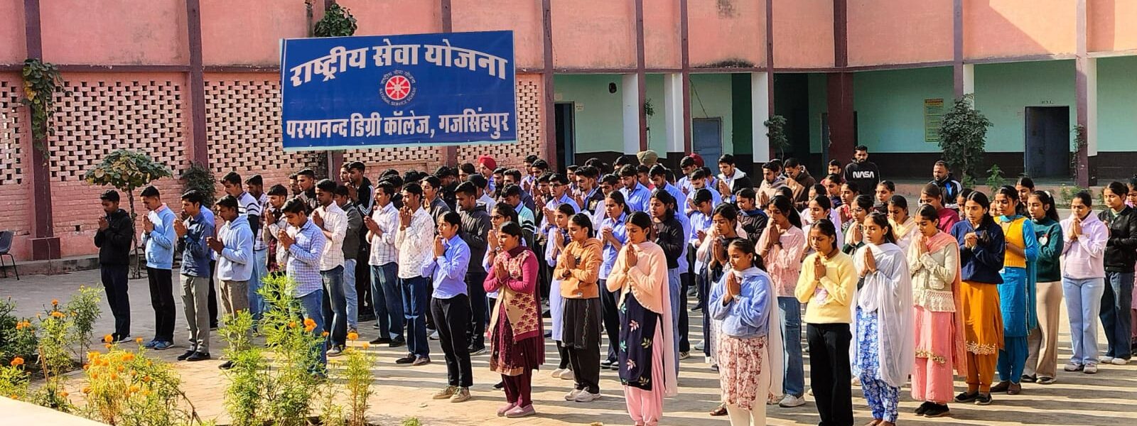 गजसिंहपुर,(यश कुमार)। स्थानीय परमानंद डिग्री कॉलेज में राष्ट्रीय सेवा योजना (एनएसएस) के द्वारा संविधान दिवस का आयोजन किया गया इस अवसर पर राष्ट्रीय गीत वंदे मातरम और राष्ट्रीय गान जन गण मन गण का गायन किया गया इस कार्यक्रम मे कॉलेज के अध्यापकगणों और छात्रों ने बढ़-चढ़कर भाग लिया एनएसएस के कार्यक्रम अधिकारी अनिल प्रजापति व स्वयंसेवकों ने संविधान की प्रस्तावना का पाठ किया और संविधान के महत्व पर चर्चा की प्रिंसिपल डॉक्टर एम सी भारद्वाज ने संविधान दिवस के अवसर पर अपने विचार व्यक्त किए और छात्रों को संविधान के प्रति जागरूक रहने का आग्रह किया कार्यक्रम में कॉलेज स्टाफ और छात्रों ने संविधान की शपथ ली और संविधान के प्रति अपनी प्रतिबद्धता व्यक्त की गई ।
