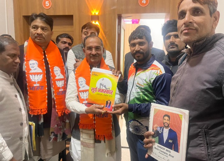 भाजपा प्रदेश अध्यक्ष मदन राठौड़ ने संदीप आर्य की पुस्तक ‘सूर्य नमस्कार’ का किया विमोचन