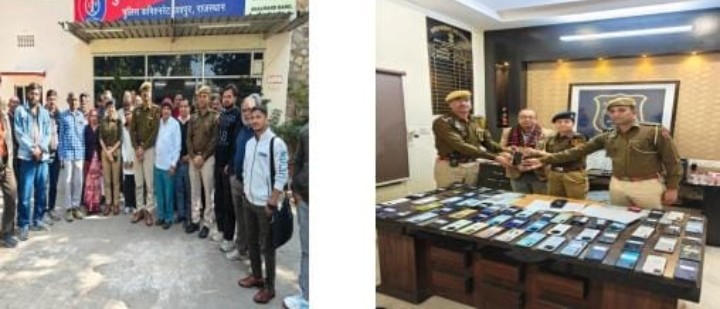 जयपुर,(सुरेन्द्र कुमार सोनी) । पुलिस उपायुक्त जयपुर पूर्व संजीव नैन IPS ने बताया कि गुम हुए मोबाईलो को अधिक से अधिक रिकवर करने हेतु श्री आलोक सिंघल अति. पुलिस उपायुक्त जयपुर पूर्व, श्रीमती लक्ष्मी सुथार सहायक पुलिस आयुक्त आदर्शनगर जयपुर पूर्व के सुपरविजन में श्री महेश चन्द्र गुर्जर पु.नि. थानाधिकारी पुलिस थाना जवाहर नगर जयपुर पूर्व पूर्व के नेतृत्व में टीम का गठन किया गया। गठित टीम द्वारा मेहनत व लगन से कार्य कर थाने पर मोबाईल गुम होने संबंधी रिपोर्ट के प्रत्येक मोबाईल को सी.ई.आई.आर. पोर्टल पर दर्ज किया गया। सी.ई.आई.आर. पोर्टल पर प्रतिदिन अपडेशन चैक कर उपयोगकर्ताओ को समझाईस कर विगत 02 माह में 83 मोबाईल रिकवर किये गये है। रिकवर किये गये मोबाईलो में वर्ष 2024 के 14 मोबाईल, 2025 के 68 मोबाईल व वर्ष 2026 के 3 मोबाईल है। रिकवर किये गये मोबाईलो को आज पुलिस थाना जवाहर नगर जयपुर द्वारा पीडितो को थाने पर बुलाया जाकर सुपुर्द किया गया, पीडितो ने अपने मोबाईल पाकर खुशी जाहिर की है।