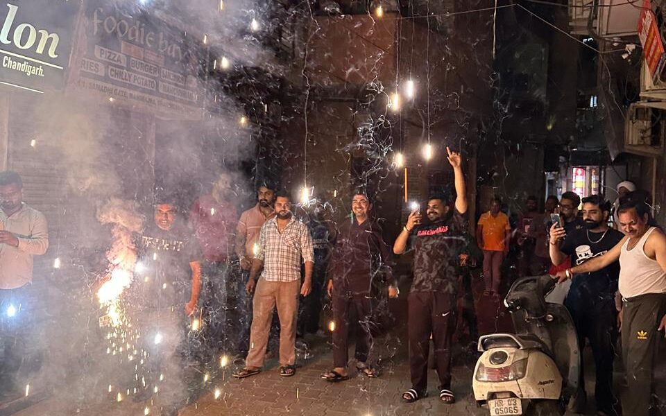 मनोज शर्मा, चंडीगढ़। टी-20 वर्ल्ड कप फाइनल में भारतीय टीम की शानदार और धाकड़ जीत के बाद चंडीगढ़ सहित पूरे भारतवर्ष में लोगों ने जमकर जश्न मनाया। जीत की खबर मिलते ही शहर में जगह-जगह लोगों ने आतिशबाजी की, ढोल-नगाड़ों के साथ नाचते-गाते हुए खुशी का इजहार किया।