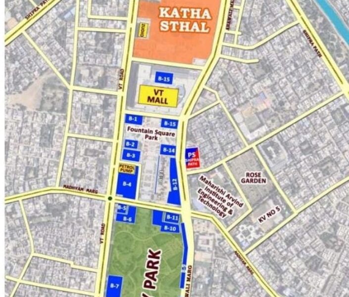 8.शिप्रापथ रोड, मध्यम मार्ग पर पार्किंग स्थलों के अतिरिक्त मुख्य मार्ग पर सभी प्रकार के वाहनों की पार्किंग निषेध रहेंगी।