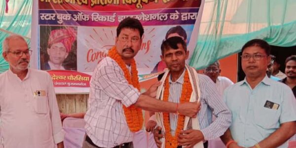 प्रतिभा विभूषण सम्मान मिलने पर किसान सिद्धेश्वर को किया गया सम्मानित