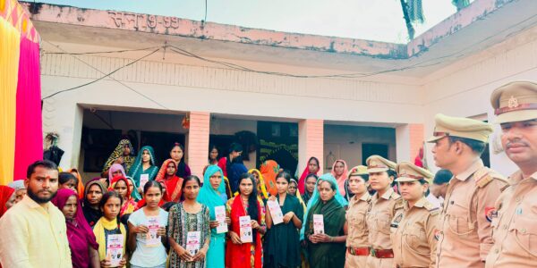 चौपाल में बृजमनगंज पुलिस ने बालिकाओं व महिलाओं को किया जागरूक