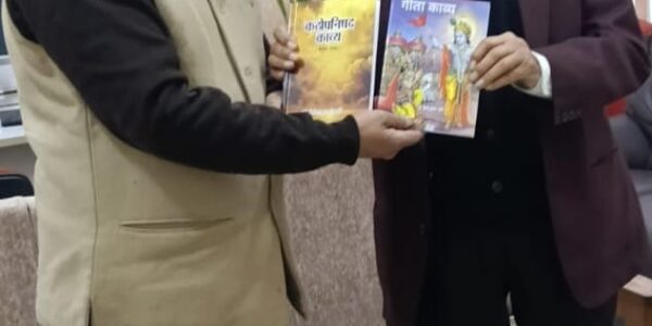 मनोज शर्मा,चंडीगढ़। केंद्रीय विश्विद्यालय, हिमाचल प्रदेश के कुलाधिपति, पद्मश्री प्रो. हरमहेंदर सिंह बेदी को पंजाब विश्वविद्यालय में मुलाकात के दौरान डॉ. विनोद कुमार शर्मा ने अपना काव्य संग्रह ‘गीता काव्य’और कठोपनिषद भेंट किया। कुलाधिपति,पद्मश्री प्रो. हरमहेंदर सिंह बेदी ने कहा कि डॉ.विनोद कुमार…
