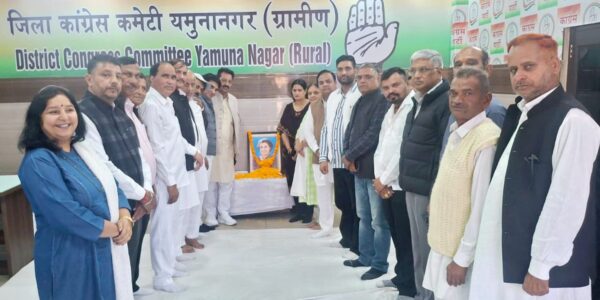 Jagadhri-Yamunanagar,( Haryana) 21/11/25 : on the birth anniversary of Bharat Ratna, India’s first woman Prime Minister, late Smt. Indira Gandhi, at the office of the Rural Unit Congress Committee of District Yamunanagar, all the Congressmen of District Yamunanagar paid homage…