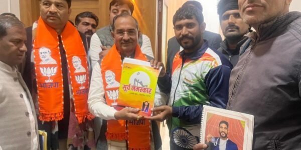 जयपुर,(सुरेन्द्र कुमार सोनी) । राष्ट्रीय युवा दिवस के अवसर पर विश्व चैंपियन संदीप आर्य द्वारा लिखित पुस्तक ‘सूर्य नमस्कार’ का विमोचन भारतीय जनता पार्टी के प्रदेश अध्यक्ष मदन राठौड़ द्वारा किया गया। राठौड़ ने संदीप आर्य की उपलब्धियों की सराहना…