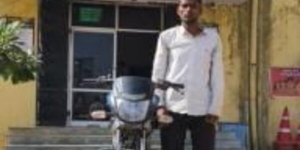 कस्बा चाकसू मे बजाज शोरुम के पास से चोरी हुयी मोटरसाईकिल को आरोपी के साथ बरामद किया जाकर आरोपी राजेन्द्र उर्फ गोलू सैनी को किया गिरफ्तार